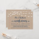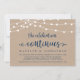 Schöne moderne, schöne rustikale Bauernstreichelampen, Navy Blue Script Schriftart auf Kraft Papier Hintergrund, Hochzeitsfeier Ankündigung, Einladungskarte (Die Feier geht weiter). Dies ist ideal für Ihren Hochzeitsempfang und Ihr Party nach der Hochzeit. Fügen Sie Ihre Daten in passender Schriftart / Schrift hinzu. #TeeshaDerrick