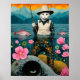 Ein buntes Kunstwerk im surrealen Stil einer Katze beim Angeln