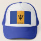 Die nationale Flagge von Barbados wurde offiziell am 30. November 1966, erster die Unabhängigkeits-Tag der Insel adoptiert. Sie besteht aus einem triband von zwei Bändern Ultramarin getrennt durch ein goldenes mittleres Band. Ein schwarzes Trident-köpfiges (allgemein genannt den "gebrochenen Dreizack") wird innerhalb des goldenen Bandes zentriert. Die Flagge wurde vom lokalen Kunstlehrer Grantley Prescod entworfen und wurde von herum 1000 Entwürfen nach einem inselweiten Wettbewerb gewählt. Die zwei blauen Bänder werden gesagt, um für den Ozean zu stehen, während das Gold für den Sand auf der Insel ist. Der Trident wird vom alten KolonialAbzeichen, das Britannia zeigte, das einen Trident hält, der defekte unterere Teil symbolisiert einen symbolischen Bruch mit seinen historischen und VerfassungsKrawatten als ehemalige Kolonie genommen. [1] Die drei Punkte des Dreizacks stellen die drei Demokratieprinzipien - Regierung, für und durch der Leute dar.