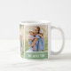 Eine moderne und minimale Foto-Kaffee-Tasse, die sich perfekt für den Muttertag oder andere besondere Geschenke für die Mama eignet, bietet eine Kollektion von drei (3) beliebten Fotos für Familien mit Kindern. "Die beste Mama" / "Wir Liebe Sie" Formulierung kann völlig personalisiert sein. Die Aloe Green Akzent Farbe kann auch an Ihre Fotos oder Wohngestaltung angepasst werden.