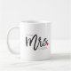 Eine wunderschöne Tasse mit dem Wort "Mrs." Set in einer modernen Kalligraphie mit einem kleinen roten Herz. Personalisieren Sie Ihre Daten mit Ihrem Nachnamen.