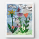Ich habe dieses Kunstwerk auf meinem Tablett gezeichnet. Blume, Ladybugs, inspirierendes Zitat, Libellen und musikalische Noten in lila, gelb und koral.