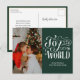 Freuen Sie sich auf die World Green Calligraphy Foto Modern Holiday Postcard. Mit dieser festlichen und modernen Urlaubskarte senden Sie Ihren Lieben eine Urlaubskarte. Alle Texte sind so vorbereitet, dass Sie sie einfach und schnell mit Ihren eigenen Details personalisieren können. Gute Ferien!