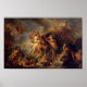 Dies ist eine Reproduktion von "The Fury of Achilles" von 1737 von Charles Antoine Coypel. Öl auf Leinwand, 147 x 195 cm im Hermitage Museum, St. Petersberg, Russland. Coypel war einem französischen Künstler geboren, der Erster Maler des Königs war, eine Position, die er 1747 im Alter von einundfünfzig Jahren erlangte. Er erhielt viele Kommissionen für den Palais de Versailles und war Direktor der Academie Royale. Er hatte auch literarische Talente, als er zwei Tragödien, mehrere Komödien und einige Gedichte hervorbrachte. Er starb 1752. Sein "Zorn der Achilles" wurde im Alter von 41 Jahren produziert und zeigt die Passage in der Iliade, wo Achilles über das Schlichte von Troja wütet und sogar mit dem Schamander kämpft.