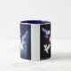 Schöne Kaffee-Tasse mit dem Bild der Götter übergeben die Unterstützung der Erde mit zwei Tauben, die Hoffnung und Frieden symbolisieren. Beautiufl Tasse mit den schwarzen, blauen und weißen Akzenten entworfen vom Künstler Rick kurz