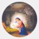 Aufkleber mit Wladimir Borovikowskis religiösem Gemälde Die Geburt Christi (1757-1825). Mutter Maria hält den neugeborenen Jesus in seiner Hand mit einem Stall voller Tiere, Engel und Hirten, die darauf schauen. Ein bedeutendes Geschenk für Weihnachten und religiöse Feiern.