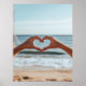 Zwei Hände bilden eine Herzform vor einer ruhigen Kulisse am Strand, die Liebe, Verbindung und Ruhe am Meer symbolisiert