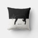 Die gerissene schwarze Katze hat ihre Pfoten gequä Kissen