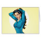 Ist hier ein großes Bild einer Geschäftsfrau in einer intelligenten Jacke und in einem kurzen Shirt, das ihr reizende Beine zeigt. Sie zieht ihre Haarrückseite wie sie ungefähr, um zu irgendeinem ernstem Geschäft fertig zu werden. Überzeugt und verführerisch gleichzeitig. Kunst durch das späte aber große Al Rio. Offiziell genehmigte Waren