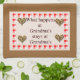 Meine Originalvorlage, ", was an der Großmutter geschieht, bleibe an der Großmutter" mit Herz geformten Schokoladenkeksen, rote Gingham-Karogrenze. Wählen Sie einen anderen Farbhintergrund, wenn Sie gewünscht werden.