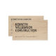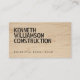 Ihr Name oder Ihr Firmenname wird in einem fett formatierten Schriftart im Stablenstil auf einem Hintergrund aus Sperrholz aus Ahorn auf dieser Bauweise oder der Visitenkartenvorlage des Erstellers angezeigt. Die Ästhetik wird auf die Rückseite der Karte übertragen. © 1201AM CREATIVE