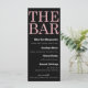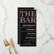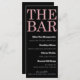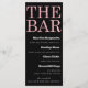 Dieses benutzerdefinierte Bar-Menü zeichnet sich durch ein ausgeklügeltes Schwarz-Rosa-Glitzer-Design aus. Der Titel "The Bar" wird oben in einem großen Schriftart im rosa Glitzer-Stil auf einem schwarzen Hintergrund gedruckt. Eine Liste mit Cocktails und Getränken ist unten in weiß gedruckt. Es ist perfekt für jedes Party oder jede Veranstaltung.