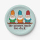 Die Gnomes ließen mich ihn tun. 3 verschiedene farbige Gnomes, die heraus hängen. Parodie/Parodie des Teufels ließen mich ihn tun. 3 Gnomebilder. Grün-/Türkishintergrund. Völlig kundengerecht.
