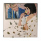 Künstler: Coby Whitmore | Frau in einem Polka Dotcoat in einem Auto riecht eine gelbe Blume.