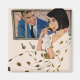 Künstler: Coby Whitmore | Frau in einem Polka Dotcoat in einem Auto riecht eine gelbe Blume.
