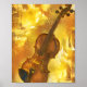 Die künstlerische Wandkunst für Musikliebhaber bietet eine AI-verstärkte Geige in goldenen Tönen.