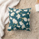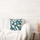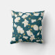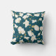 Modernes Kissen mit elegantem Blumenmuster mit schönen goldenen und weißen Orchideen auf blauem Hintergrund.