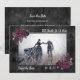 Dunkelschöne Save the Date Karte mit Till Death Do Us Part Sprichwort, dunkelvioletten Rose und schwarzem Diamantmuster-Hintergrund. Skripttypografie. Personalisieren Sie mit Ihrem eigenen Foto. Sehen Sie die Koordination der Artikel in unserem Shop, Verzauberte Finch.