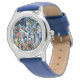 Kinderuhr aus Edelstahl mit blauem Lederarmband