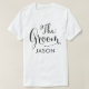 Das Wedding Groom Shirt verfügt über moderne, schwarz wirbelnde Kalligraphie-Skripte mit elegantem Vornamen, den Sie personalisieren können. Sehen Sie sich unsere koordinierenden Brautparty-Designs an!