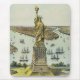 Alte Illustration der großen Bartholdi-Statue, Liberty Enlightening the World, ursprünglich veröffentlicht von Currier & Ives im Jahr 1885. Currier & Ives veröffentlichte 12 verschiedene Ausgaben des Drucks. Die Freiheitsstatue war das höchste Bauwerk in New York City, als sie am 28. Oktober 1886 eingeweiht wurde. Die Statue selbst ist 148 Fuß hoch und steht auf einem 150 Fuß hohen Steinsockel, der eine Gesamthöhe von 298 Fuß erreicht. Sie wurde von Frederic Auguste Bartholdi geschaffen und den Amerikanern von den Bürgern Frankreichs geschenkt. Frankreich bewunderte Amerika für seinen Erfolg bei der Errichtung einer demokratischen Regierung, der Abschaffung der Sklaverei und für das fortgesetzte Streben des Landes nach Freiheit. Die Ansicht zeigt Liberty, errichtet auf Bedloe's Island, den Hafen von New York mit Schiffen, Brooklyn, Manhattan und Flüssen