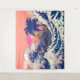 Die große Welle von Kanagawa und Palmen Wandteppich