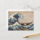 Es zeigt eine gewaltige Welle bedrohende Boote vor der Küste der Präfektur Kanagawa. Wie in allen Druckgrafiken der Serie, zeigt es die Gegend um den Fuji unter bestimmten Bedingungen, und der Berg selbst erscheint im Hintergrund. Es ist das berühmteste Werk von Hokusai und eines der bekanntesten Werke japanischer Kunst der Welt.