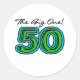 Eine große Zahl 50 in coolem Blau, Grün wird auf unseren Big 5-0-Geburtstagsgeschirr, Tasse, Knöpfen und anderen 50. Geburtstagsgeschirr vorgestellt. Es ist die große!