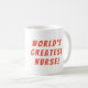 Cartoon-Bild einer Krankenschwester mit der Überschrift 'Weltgrößte Krankenschwester'. Personalisieren Sie diese Tasse einfach, indem Sie den Vorlagentext bearbeiten, um einen Namen hinzuzufügen oder die Nachricht zu ändern. Humorvolle Schwarz-Weiß-Tinte zeichnend. Danke, dass du mir meine Designs angesehen hast! Karo aus den anderen Cartoon in meinem Laden...