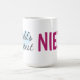 Diese niedliche und schlichte Tasse zeichnet sich durch ein hellblaues Herz aus, das in Schwarz und Rosa mit den Worten "Das größte Nichte der Welt" übersetzt wird. Das perfekte Geschenk Geburtstag oder Dankeschön für die besondere Nichte in Ihrem Leben!