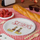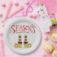 Das Party wird in der Saison mit einem festlichen, handgeschriebenen "Weihnachtsgrüße"- mit einem Paar Christmasy-Elf-Schuhe auf hellgrauem Hintergrund geliefert.