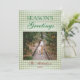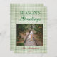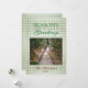 Die Grüße der Saison! Klassischer grüner Gingham mit dunkelgrüner und bordeauxroter Typografie. Bildvorlage über Pixabay, lizenziert unter CC0 und muss durch Ihr eigenes Foto ersetzt werden