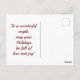 Auf dieser Holiday Postkarte steht ein süßes Bild von zwei Eisbären mit Schals mit Schneeflocke. An der Vorderseite der Postkarte steht: "Die Grüße der Jahreszeit" und auf der Rückseite der Postkarte steht: "Für ein wunderbares Paar, möge dein Urlaub voller Liebe und Freude sein!". Ein wunderbarer Gruß, um an dieses Lieblingspärchen in Ihrem Leben zu senden!