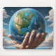 Die Hände des Menschen halten den Planeten Erde Mousepad