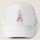 Weiße Kappe mit rosa Brustkrebs-Sensibilisierungsband, "finde die Heilung", Oktober