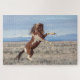 Der junge Bandhengst Splaash schlägt eine Pose, wenn er mit einer Gruppe von Junghengsten konfrontiert wird, die zu nah für seine Stuten werden.