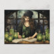 Eine Hexe liest aus ihrem Zauberbuch, während sie Kräuterheiltränke macht, die von der KI generiert wurden