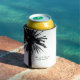 Moderne Schwarz-Weiß Palmen Strand Hochzeit kann Kühler für Bier und andere Getränke. Exotische Tropische Hochzeit in Urlaubsort Getränkehändler. Elegantes Design mit wunderschöner Silhouette exotischer Küstenpalmen. Maßgeschneidertes Heiratszubehör und Party für gehobene Braut- und Bräutigam. Geben Sie Ihren eigenen Namen, Ihre Monogrammbriefe und Ihr Datum ein. Glamour Stil. Anpassbare Hintergrundfarbe. Auch schön für das Brautparty im Sommer, Verlobung Grillen oder Jubiläum. Schrift-Typografie-Vorlage.