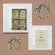 Auf diesem rustikalen Western-Design sind Barentüren und ein Rose-Kranz der Flora zu sehen. Die Türverkleidungen tragen Save the Date die Namen und die Phrase. Zurück hat Datum und Informationen, die mit Ihren Informationen bearbeitet werden können. Entspricht der Einladung zur Brauttüre.