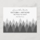 Diese Save the Date Postkarten sind ideal für alle, die eine rustikale Waldhochzeit planen. Das Design zeichnet sich durch eine trendige, ombre, waldreiche Palette in Grautönen auf einem weißen Hintergrund mit farblich koordinierter bearbeitbarer Formulierung aus. Das rustikale Design kann personalisiert sein, um Ihre besondere Veranstaltung zu Anzug und wird die perfekte Ankündigung für jedes Land themed Party, einschließlich; Brautparty, Verlobungen, Polterabende, Geburtstagspartys und vieles mehr.