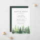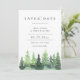 Elegante Aquarellwaldbäume, Save the Date Karte. Elegantes und modernes Typografie-Design. Backing Farbe, in dunkelwaldgrün dargestellt, kann angepasst werden.