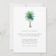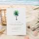 Eine einfache, aber elegante Hochzeitseinladung, die perfekt zum Ziel oder zur Hochzeit am Strand mit einer Aquarellpalme ist.