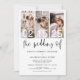 "The Wedding of Modern Elegant Four (4) Foto Collage and Large Date Minimalistisch Wedding Invitation" - eine Mischung aus zeitgenössischer Eleganz und Einfachheit. Diese Einladungen zeichnen sich durch eine moderne Typografie aus, die Eleganz, Einfachheit und eine Touch der Moderne ausstrahlt, die perfekt für Ihre minimalistische Hochzeitsfeier geeignet ist. Was diese Einladungen auszeichnet, ist die Einbindung eines QR-Codes, der Technologie und Tradition nahtlos integriert. Dieser QR-Code kann personalisiert sein, um Ihre Gäste zu einer Website oder digitalen Inhalten zu führen, die mit Ihrer Liebe, Ihren Hochzeitsdetails oder sogar einer virtuellen UAWG in Zusammenhang stehen, wodurch Ihre Hochzeitskommunikation eine einzigartige und bequeme Dimension erhält. Nach Ihrer eleganten und minimalistischen Hochzeitsfeier verwandeln sich diese Einladungen in wertvolle Pflaster, die die Erinnerungen Ihres besonderen Tages bewahren. Mit dem QR-Code werden sie zu einer Brücke zwischen dem Traditionellen und dem Digitalen, was Ihre Hochzeitskommunikation nicht nur schön, sondern auch technologisch innovativ macht. Set den Ton für eine Hochzeit, die zeitlos und modern ist mit diesen Einladungen.