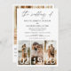 Die Hochzeit von modernen eleganten vier (4) Fotocollage und großen Date QR Code Minimalistisch Hochzeit Einladung. Die Einladungskarten für Hochzeiten enthalten eine moderne Typografie, die elegant, einfach und modern zu bedienen ist, nachdem Sie minimalistisch einfache Hochzeitsfeier.