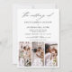 "The Wedding of Modern Elegant Four (4) Foto Collage and Large Date Minimalistisch Wedding Invitation" - eine Mischung aus zeitgenössischer Eleganz und Einfachheit. Diese Einladungen zeichnen sich durch eine moderne Typografie aus, die Eleganz, Einfachheit und eine Touch der Moderne ausstrahlt, die perfekt für Ihre minimalistische Hochzeitsfeier geeignet ist. Was diese Einladungen auszeichnet, ist die Einbindung eines QR-Codes, der Technologie und Tradition nahtlos integriert. Dieser QR-Code kann personalisiert sein, um Ihre Gäste zu einer Website oder digitalen Inhalten zu führen, die mit Ihrer Liebe, Ihren Hochzeitsdetails oder sogar einer virtuellen UAWG in Zusammenhang stehen, wodurch Ihre Hochzeitskommunikation eine einzigartige und bequeme Dimension erhält. Nach Ihrer eleganten und minimalistischen Hochzeitsfeier verwandeln sich diese Einladungen in wertvolle Pflaster, die die Erinnerungen Ihres besonderen Tages bewahren. Mit dem QR-Code werden sie zu einer Brücke zwischen dem Traditionellen und dem Digitalen, was Ihre Hochzeitskommunikation nicht nur schön, sondern auch technologisch innovativ macht. Set den Ton für eine Hochzeit, die zeitlos und modern ist mit diesen Einladungen.