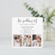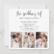 "The Wedding of Modern Elegant Four (4) Foto Collage and Large Date Minimalistisch Wedding Invitation" - eine Mischung aus zeitgenössischer Eleganz und Einfachheit. Diese Einladungen zeichnen sich durch eine moderne Typografie aus, die Eleganz, Einfachheit und eine Touch der Moderne ausstrahlt, die perfekt für Ihre minimalistische Hochzeitsfeier geeignet ist. Was diese Einladungen auszeichnet, ist die Einbindung eines QR-Codes, der Technologie und Tradition nahtlos integriert. Dieser QR-Code kann personalisiert sein, um Ihre Gäste zu einer Website oder digitalen Inhalten zu führen, die mit Ihrer Liebe, Ihren Hochzeitsdetails oder sogar einer virtuellen UAWG in Zusammenhang stehen, wodurch Ihre Hochzeitskommunikation eine einzigartige und bequeme Dimension erhält. Nach Ihrer eleganten und minimalistischen Hochzeitsfeier verwandeln sich diese Einladungen in wertvolle Pflaster, die die Erinnerungen Ihres besonderen Tages bewahren. Mit dem QR-Code werden sie zu einer Brücke zwischen dem Traditionellen und dem Digitalen, was Ihre Hochzeitskommunikation nicht nur schön, sondern auch technologisch innovativ macht. Set den Ton für eine Hochzeit, die zeitlos und modern ist mit diesen Einladungen.