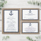 Der Marinestanker auf der Hochzeitskollektion am Strand ist ideal für alle Paare, die eine romantische Hochzeit am Meer planen. Der rustikale Einbrucheffekt verleiht diesen Einladungen ein boho-chic-Ambiente, während die Farbe der Marine während Ihrer Hochzeit verwendet werden kann. Der Anker des Wasserschiffs ist die perfekte Touch für eine elegante Hochzeit am Wasserstrand. Diese Menüs können für Ihren besondere Anlass personalisiert sein und würden die perfekte Menüvorlage für jede Hochzeit, Brautparty, Verlobung Party, Geburtstagsparty und vieles mehr machen. *Bitte beachten Sie, dass Zazzle nur gedruckte Menüs verkauft, sodass diese Menüs keine echten Bestückungsmaterialien enthalten.