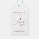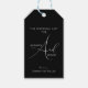Das Hochzeitsgeschenk-Tag für Braut und Bräutigam. Weiße, benutzerdefinierte Kalligraphie auf einem schwarz-weiß umgekehrten Hintergrund. Elegantes, minimalistisches Design, auffallend.