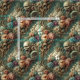 In der Höllenmotorcade treiben friedliche Marmorbilder zwischen riotösen Blüten, die von skelettartigen Freunden mit Zungen ungefurbelt geschmückt sind. Verzierte Blätter und malerische Blumen bilden eine dekadente Prozession, perfekt für Kleidungsstücke, Kleidung oder Polsterung, die Gnade und Furcht tragen.