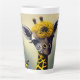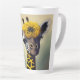 Niedliche latte Tasse zeigt, dass AI surreale digitale Kunstmalerei einer mit einer Hummel verwandten whimsical Giraffe erzeugt hat.
